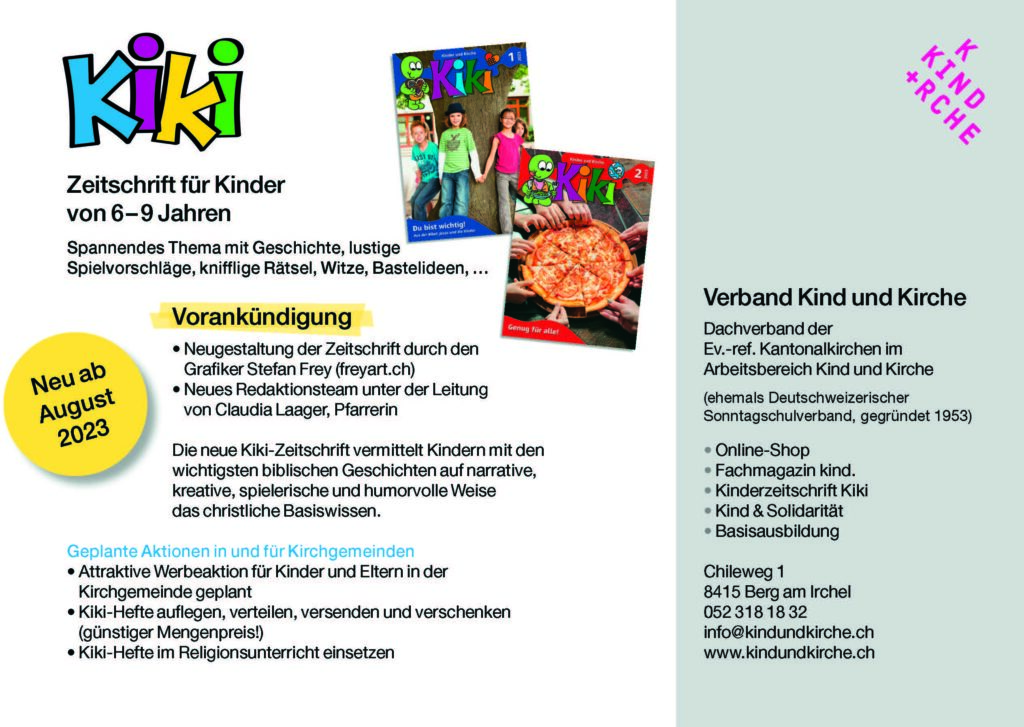 Mit diesem Produkt unterstützt der Verband die Kirchgemeinden in ihrem christlichen Grundauftrag und lädt sie ein, die neuen Hefte ab August 2023 in grosser Breite zu den Familien zu bringen. Weitere Informationen zur Werbeaktion folgt im Mai 2023.
