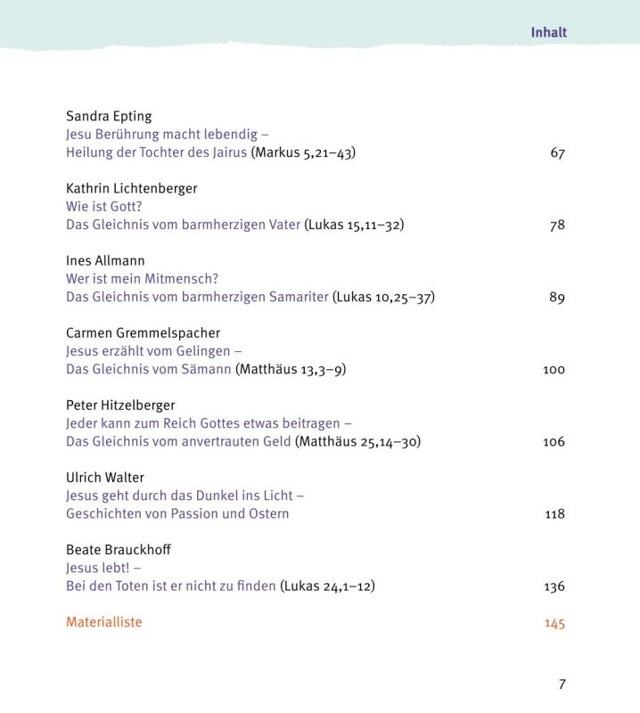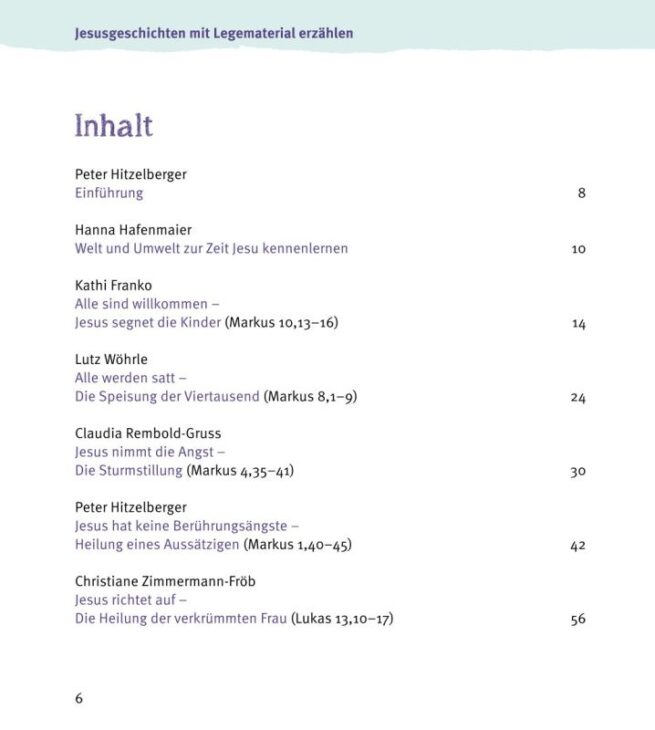 Durch die aussagekräftigen Fotos bei den Erzähltexten lassen sich die einzelnen Gestaltungsschritte leicht umsetzen. Kurze Hinweise zu den biblischen Texten und zum Legematerial, Impulse für das Gespräch mit den Kindern, Gebets- und Liedvorschläge runden das praktische Angebot dieses Buches perfekt ab.
